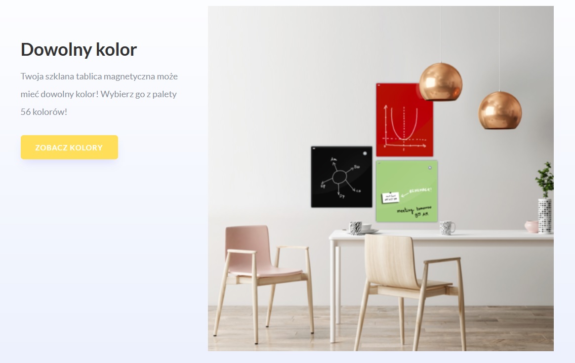 Takie szklane tablice można zamówić w różnych kolorystykach, dzięki czemu bez problemu uda Wam się je dopasować do swoich wnętrz. Niezależnie od tego, czy cenicie jasny kolor, czy bardziej przykładacie się do ciemnych akcentów. Niezależnie od tego, czy kochacie tradycje, minimalizm, industrializm – takie tablice ze szkła w wersji magnetycznej można dopasować do wielu pomieszczeń. Co więcej – można je zamówić do użytku domowego, jak również do użytku firmowego.